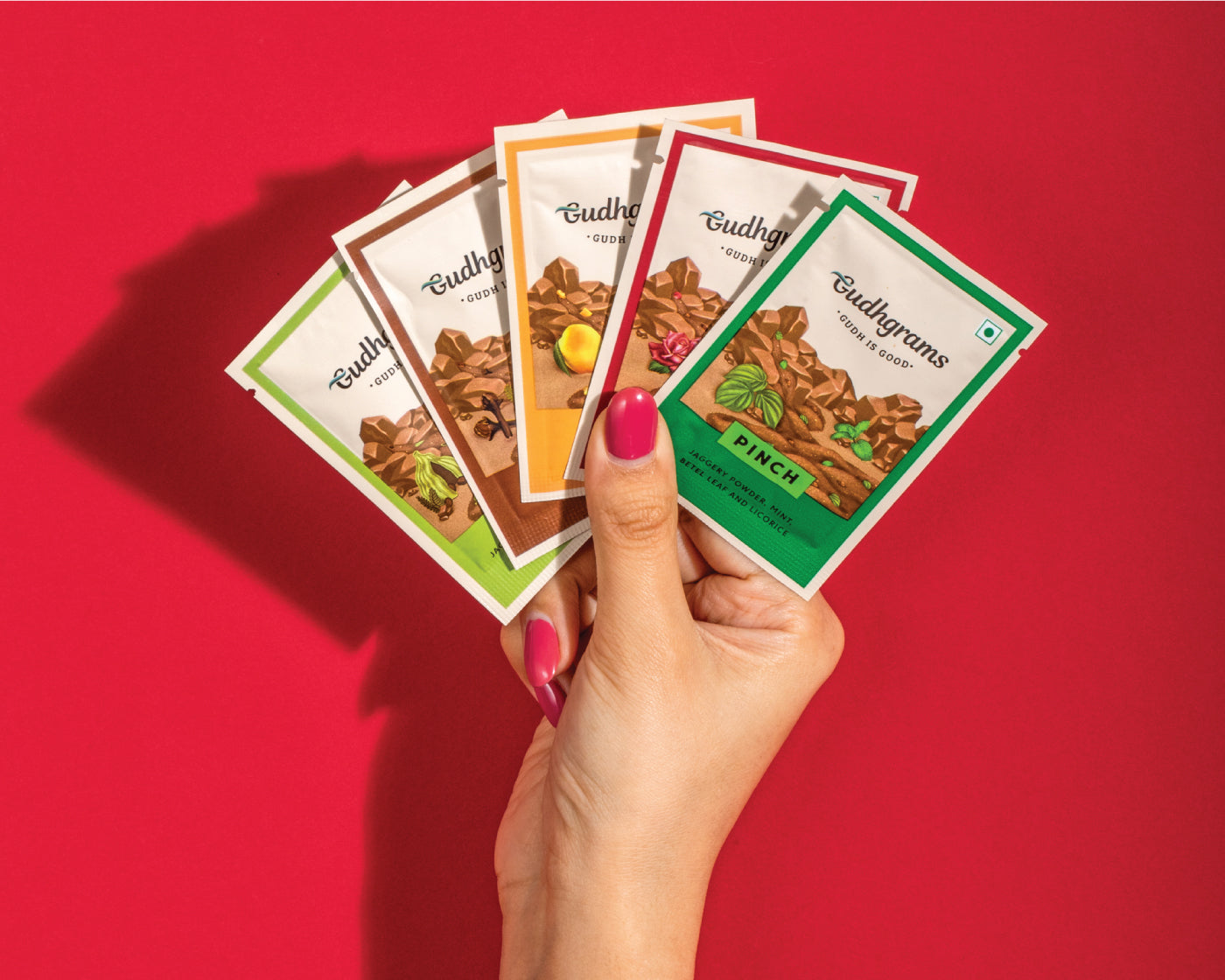 Gudhgrams began as a revolt against this idea; with the sweet realization that with the right choices, the “guilt” of eating sweets could be thrown right out the window. Inspired by the wise words of their good ol’ granny, our cofounders embarked on a journey of research and experiments, which, over two years, took the form of Gudhgrams. “Gudh khao Gudh, koi dikkat nai hogi chini wali”, granny had admonished their sweet-deprived family. And sure enough, they discovered that Gudh is surprisingly good; that it could actually be a sweet for health, instead of being a detriment to health like other sugary sweets.